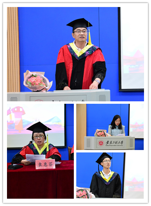 随后,纪天新寄语全体毕业生,对顺利完成学业的同学们表示热烈的祝贺,向为此付出辛勤劳动的教职工表示真挚的感谢,并向毕业生提出深切期待:希望大家牢记校训,牢记“三做”理念,坚定理想信念,踏实勤勉工作;立鸿鹄志,做奋斗者,练真本领,做实干家。教师代表陈倩老师深情发言,说到毕业离别,数度哽咽,体现了师生之间浓浓的情谊。毕业生代表纺织141班级张旭同学,用朴实的语言,幽默的话语将大学四年生活形象的叙述出来,引人大笑却又惹人泪目。