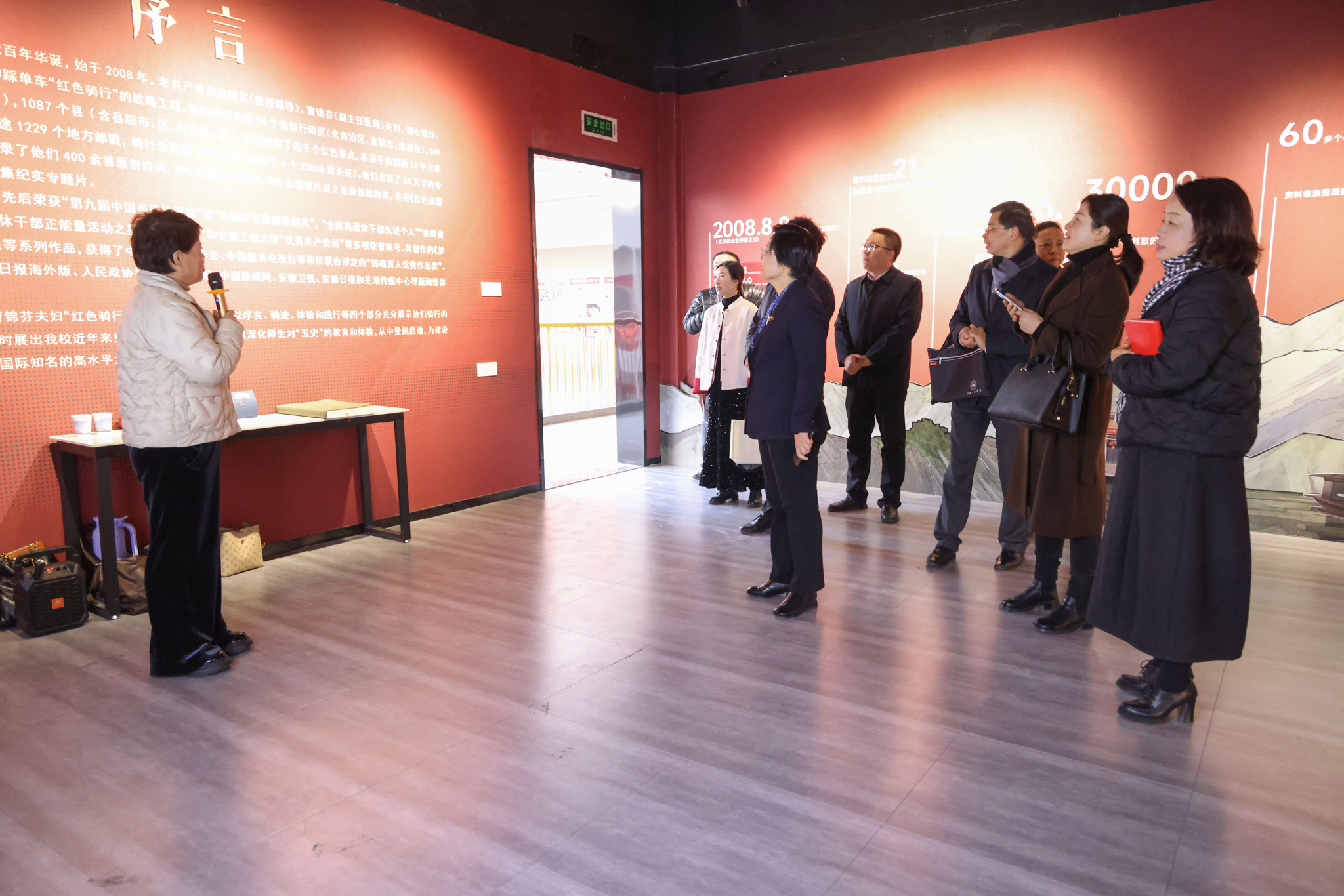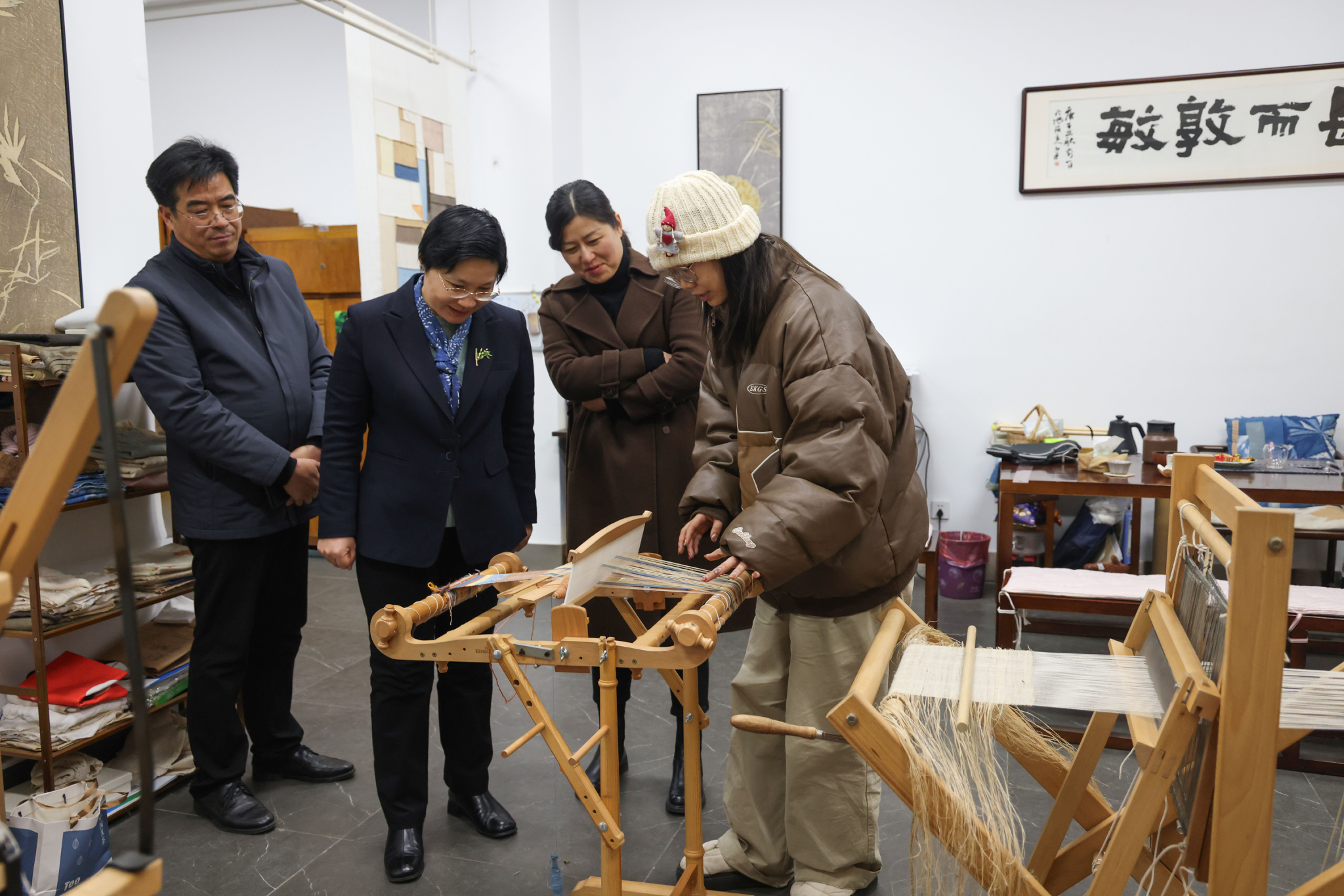 会后,赵彗星一行参观了学校红色“骑”迹体验馆、纺织服装学院“芜湖浆染”工作室和展厅。