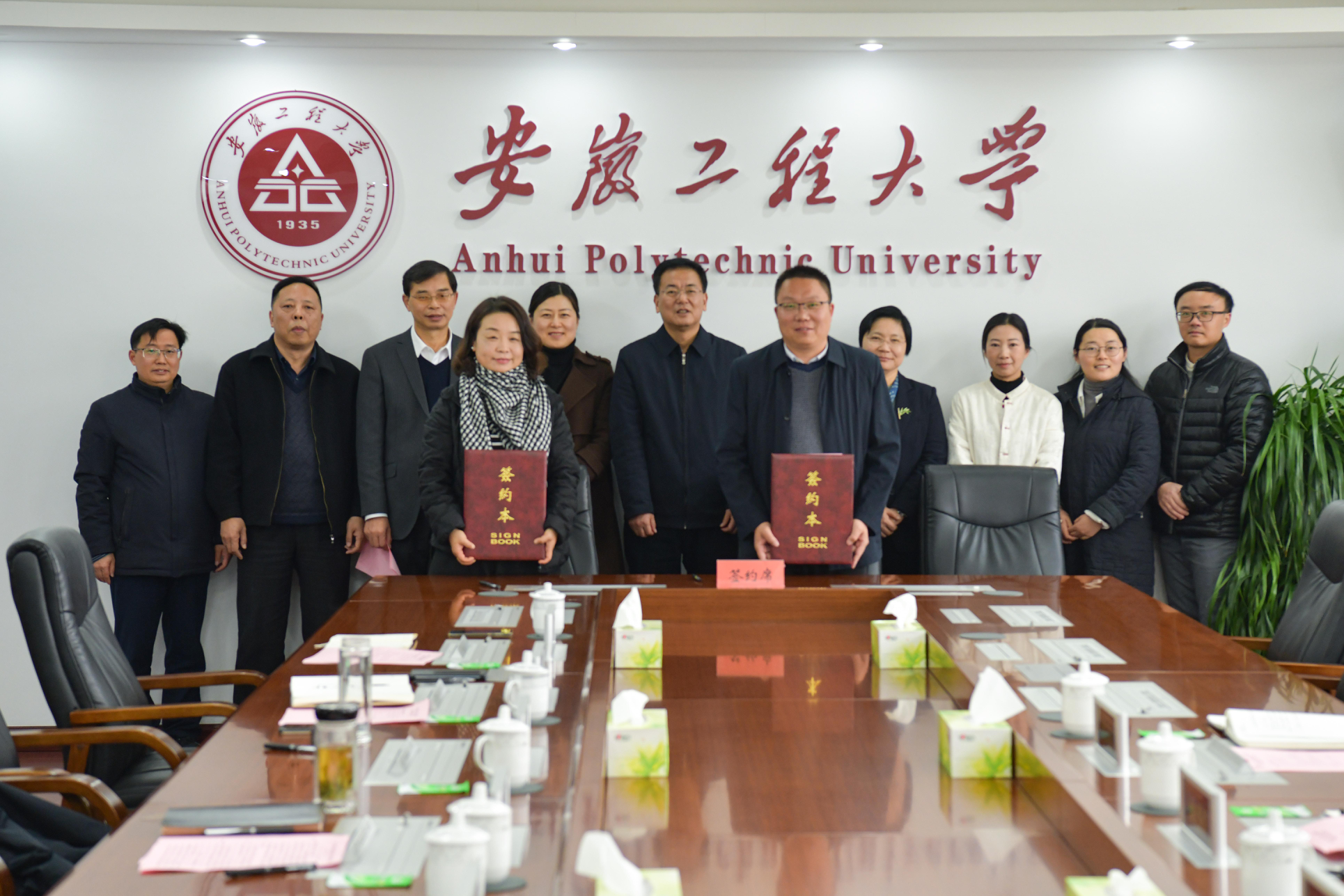 12月18日,湾沚区委常委、组织部长赵彗星,副区长缪青,陶辛镇党委书记汪火树,陶辛镇镇长濮成虎一行来校签署“大学小镇”(陶辛)共建合作协议。校党委副书记、校长黄友锐出席,办公室、社会合作处、科技处、纺织服装学院相关负责人参加。会议由社会合作处处长刘金斌主持。