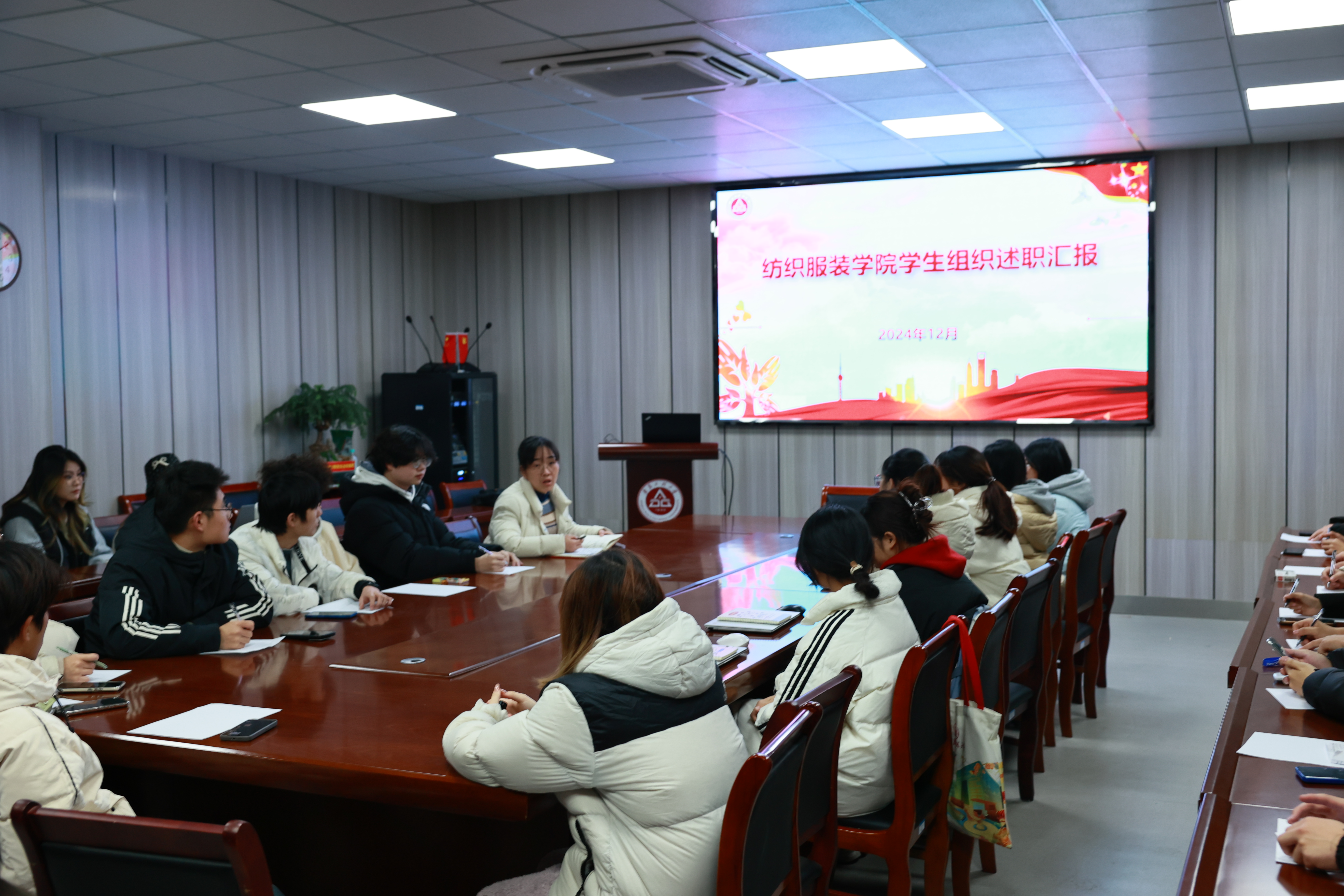 1230日,纺织服装学院于D413会议室举行学生组织述职汇报会。院团委负责人、学生会主席团成员、各部门负责人、学生代表参加会议。会议由院团委书记陈倩主持。