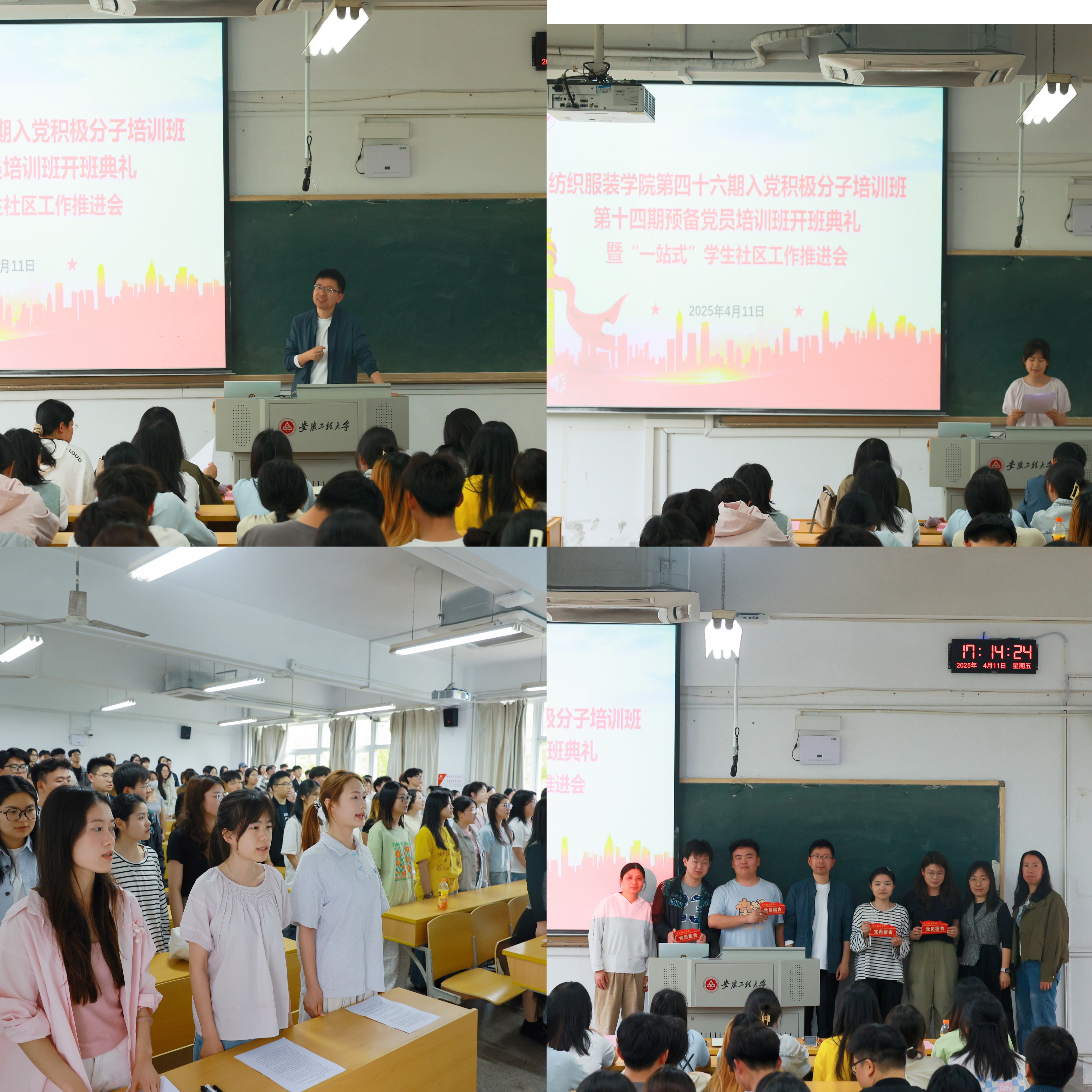 4月11日,纺织服装学院在4教109教室举行第四十六期入党积极分子培训班、第十四期预备党员班开班式暨“一站式”学生社区建设推进会。学院党委副书记梁雪松、学院团委书记陈倩、各学生党支部书记及120余名入党积极分子、全体学生党员参加。