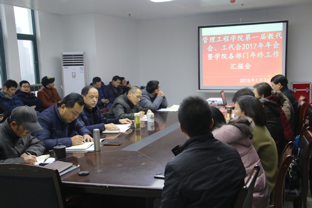1月3日下午,管理工程学院在学院会议室举行第一届教代会、工代会2017年年会暨各部门年终工作汇报会,院党政领导、工会委员、教代会执委及全体教职工参加教代会、工代会2017年年会。年会由院党委书记汪张林主持。