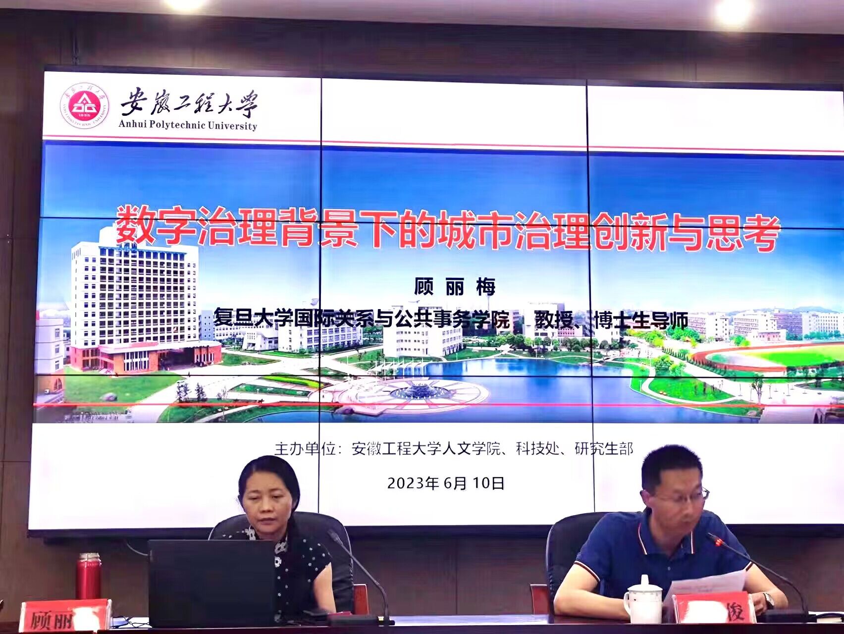 2023年6月10日下午,人文学院在图书综合楼201报告厅举办“学术月”系列活动之专家论坛,复旦大学国际关系与公共事务学院博士生导师顾丽梅教授应邀为人文学院师生作了一场题为“数字治理背景下的城市治理创新与思考”的学术报告。人文学院青年教师、研究生参加报告会,报告会由人文学院副院长邹俊主持。