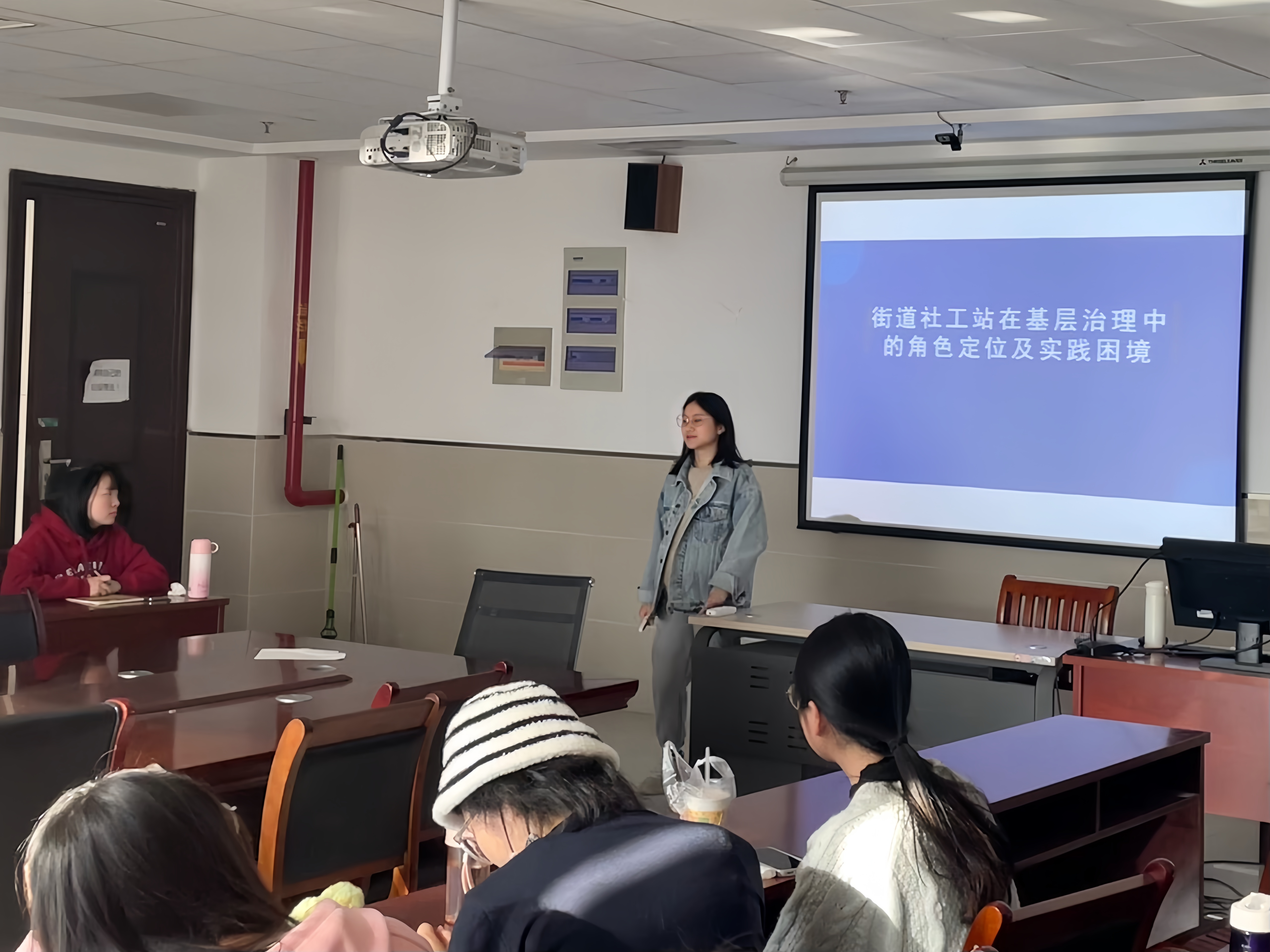会上,同学们分享与交流了各自所读的相关文献。此次报告会的开展启发了学生专业思维,加深了学生对街道社工站的专业认识与了解。