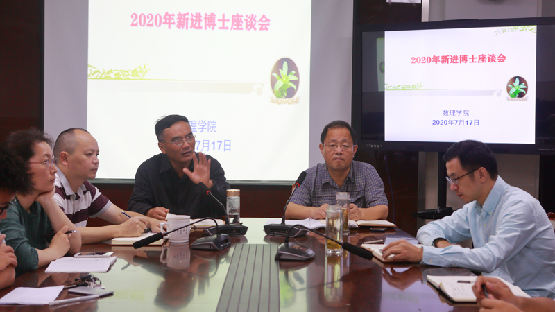 7月17日,数理学院新进博士座谈会在学院1612会议室召开,学院党政班子领导、各系(中心)主任、各党支部书记及新入职博士参加了座谈会,座谈会由院长王传玉主持。