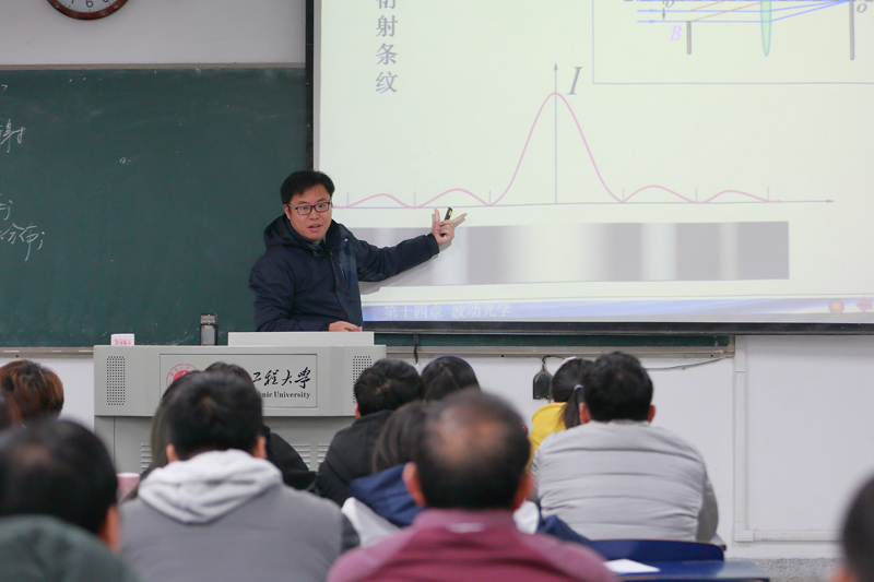 本次示范课主要内容是《单缝衍射》,课程以学生为中心,围绕“物理有源、物理有趣、物理有用”组织教学。教学环节上采用课前问题引入,课中讨论深入,课后查阅拓展的方式开展启发式教学,引导学生探究式学习。教学过程中简化繁琐的公式推导,强调物理规律的理解,强化规律的实际应用,富有新工科基础课程教学特色。教学内容上有意增加物理学史的内容,强调科学世界观和方法论的应用,将思政元素有机融入课程,深入探索实施“课程思政”。