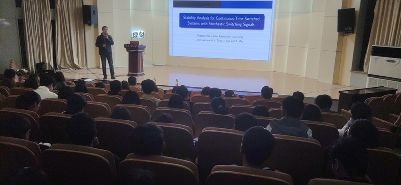 吴小太做了主题为“非线性随机混杂系统的稳定性分析”的报告,该项目近日获得了安徽省自然科学奖二等奖。他以浅显幽默的方式结合生活中的实例为大家讲解课题的由来和意义,理顺了从发现问题、查找文献、获得线索、找到规律到实证的科研过程,他指出科研是补缺补漏、创新发展的循序渐进的过程,本科生阶段科研的两个重要元素是发现问题和不断学习研究,所以要始终保持好奇心,不断学习拓展自己的科研思维。