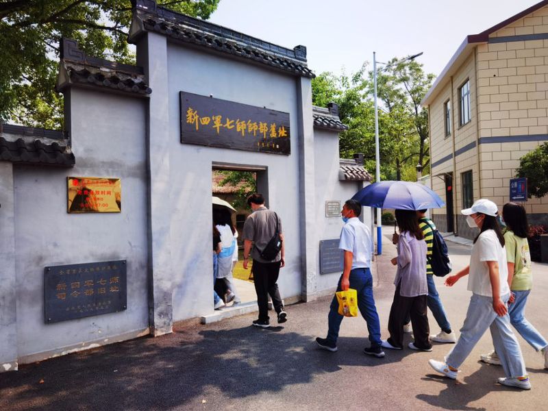 新四军七师纪念馆,位于无为县红庙乡海云行政村。全体党员一起参观了纪念馆的“牢记历史勿忘国耻”、“皖江抗日起怒潮”“血泊中诞生的新四军第七师”、“第七师驰骋皖江”、“巩固发展皖江敌后抗日根据地”、“铁流浩荡续征程”、“信念如铁蕴清廉”等8个展厅。全体党员面向鲜红的党旗,重温了入党誓词。全体党员怀着沉重和崇敬的心情瞻仰了皖江革命烈士陵园,向烈士纪念塔敬献花圈,肃立默哀,表达对革命先烈的无限怀念和崇高敬意。健步将军大道,前往三水涧自然村的新四军七师司令部旧址参观学习。