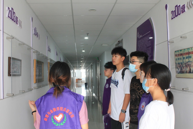 党史学习教育一直是数理与金融学院工作的重中之重。在对2021级新生开展入学教育时,学院特意将党史学习教育“前置化”,在新生尚未报到时,组织学生在家自行观看《觉醒年代》、《大决战》、《跨过鸭绿江》等党史教育影片,积极分享心得体会。在报到当天,由学生党支部党员带领新生参观学院新设计的文化墙,从学院成立讲起,加深新生印象。互联网金融211宋佩璇在参观之后表示:“原来高中的时候每天都是在埋头学习,自己也没有主动学习党史,今年暑假按照学院要求完成线上党史教育,觉得收获很多,这个暑假没有浪费!”