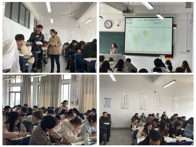 张玥老师的授课内容是《数学分析(3)》。首先系统回顾了第一型曲面积分,以“航天发射塔结构”和“2018年金沙江堰塞湖灾情”为引,采用启发式教学模式,引出导流槽的流量问题,教学过程层层递进,自然流畅地导入新课内容“第二型曲面积分”。张老师重点讲解抽象的数学概念“曲面的侧”时,采用形象的动画与发散思维进行引导,同时运用理论联系实际的教学方式以“洪水流量”为例,引导学生利用空间想象能力理解概念。在分析“第二型曲面积分与第一型曲面积分”的区别与联系时,特别提醒学生注意有向曲面的方向,再确定相应方向投影。最后,给出“第二型曲面积分”的定义及其应用。张老师整个教学环节完整、重难点突出、语言流畅自然。《数学分析》课程理论性较强,张老师娓娓道来、逻辑严谨、内容丰富、讲解清晰,学生们也一直沉浸在积极思考与学习的课堂氛围之中。