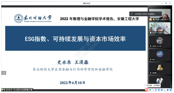 4月10日,数理与金融学院在线上举办了金融专题系列报告会,会议邀请了东北财经大学史永东教授、上海财经大学大学杨金强教授、厦门大学郑振龙教授作了专题报告。校党委常委、副校长费为银教授出席了报告会。数理与金融学院部分教师、相关专业研究生及国内其他高校的师生近200人聆听了此次报告。