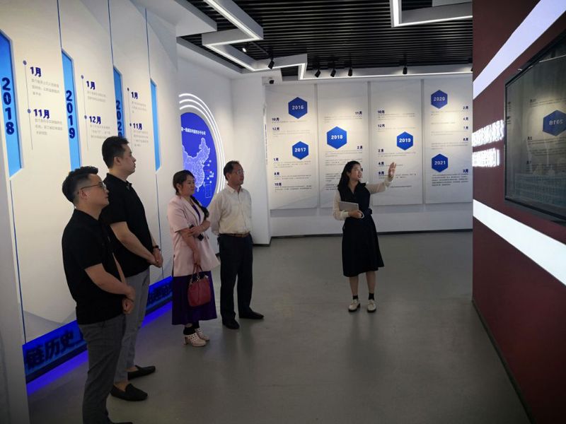 王传玉一行在王寅达总经理的陪同下参观了启链科技展厅。安徽启链数字科技有限公司是杭州趣链科技有限公司全资子公司,王寅达总经理从区块链技术、公司发展大事记、公司业务场景和全国布局以及现已开展合作单位项目情况进行了简单的介绍。作为行业内落地场景最为丰富的区块链企业,企业产品已广泛应用于金融、民生、政务、司法、能源、制造等关键领域。公司服务于住建部、审计署、工信部、国家市监局、中国人民银行、四大行总行、沪深交易所、主流股份制商业银行、国家电网以及地方政府等上百家组织或机构,支撑业务规模达数千亿人民币。