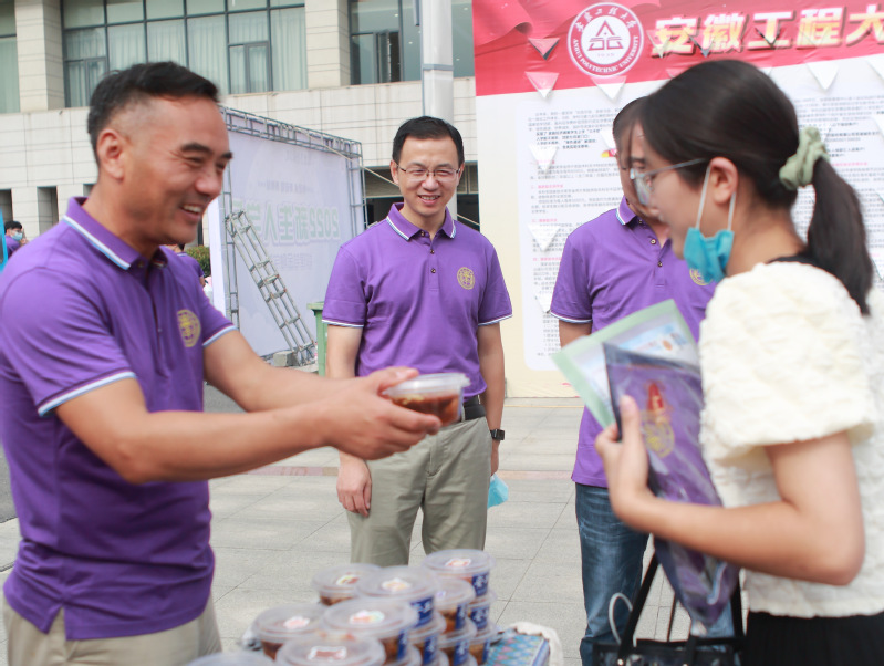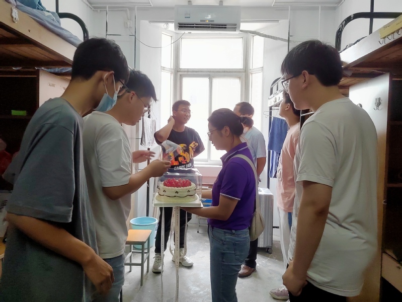 当踏入大学校园的那一刻,新生就已经是徽程精神的践行者。学院为每一位新生精心准备了一件印有院徽的紫色院服和一枚带有自己名字的铭牌,希望可以让全体新生谨记“尚德敏学 唯实惟新”的校训和“究理求真 刚毅坚卓”的院训,入学时带着满满的荣誉感,四年毕业时可以收获满满。金融222班陆毅激动的说:“9月4日是他生日,很意外学院和辅导员竟然悄悄的记住了这个日子,给自己准备了生日蛋糕,自己很感动;这个生日是在人生新的阶段、新的朋友师长给自己过的“新”的生日,很自豪自己可以成为数理与金融学院的一员,四年都会记得今天许下的愿望,不忘初心,砥砺前行。”