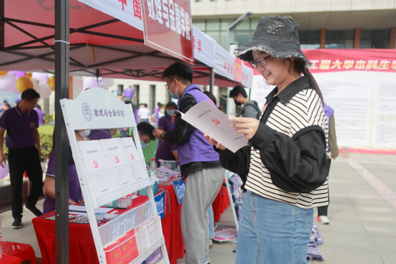“学习新思想,争做新青年。”在迎新现场,党史知识册、入党申请人成长手册、团章等可以随时取阅的小册子受到众多同学的关注。来自金融221的朱小格说:“从2020年开始的‘战疫’,到家乡的抗洪抗旱,我一点一滴地感受到党的伟大;通过仔细翻阅入党申请人成长手册,进一步了解到成长为一名共产党员的严格要求,希望通过自己的努力在大学成为一名光荣的共产党员,成为一个光荣符号、一面旗帜,成长为一名无愧时代的青年大学生。”