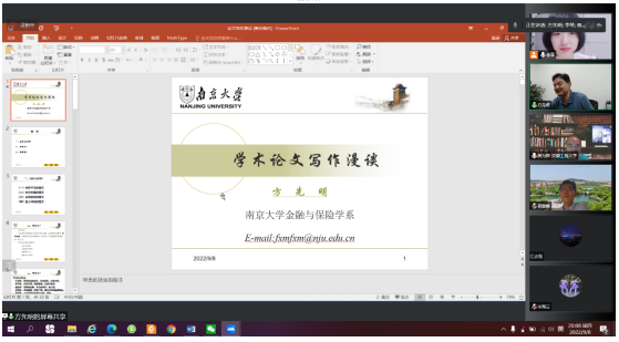 方先明教授系统分享论文写作经验,他首先概括性地为师生解答了学术论文写作中的三个基本问题:“为什么写”,即培养环节需要,知识传播需求,自我提高需求,能力训练需求;“写什么”,即在各种科学领域内专门探讨学术问题、反映研究成果的书面文件,围绕社会经济发展需求,与同行交流过程中寻找选题;“怎样写”,即选题要新,立意要明,主线要清,逻辑要顺,用词要准。然后,他具体从论文的题目、摘要、引言、正文、致谢、参考文献六个部分,详细讲解了学术论文的写作技巧。