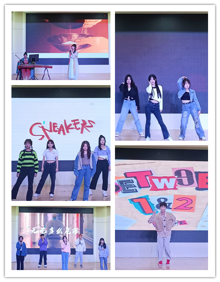 报告会现场,22级新生带来了精心排练的形式多样的才艺展示,诗朗诵《永远跟党走奋进新征程》抒发了青年学生对党和祖国的热爱、青春献给祖国的决心;小品《一波三折》通过一个体检的故事,呼吁大家关注身体健康,走出宿舍动起来,积极锻炼身体;器乐《烟雨行舟》展现了优美的中国传统文化;舞蹈《sneakers》《River& Trouble Maker》和合唱《你的答案》淋漓展现了青春的活力;吉他弹唱《风的诗》让全场沉浸,精彩纷呈的节目让现场高潮迭起,欢呼声掌声此起彼伏。