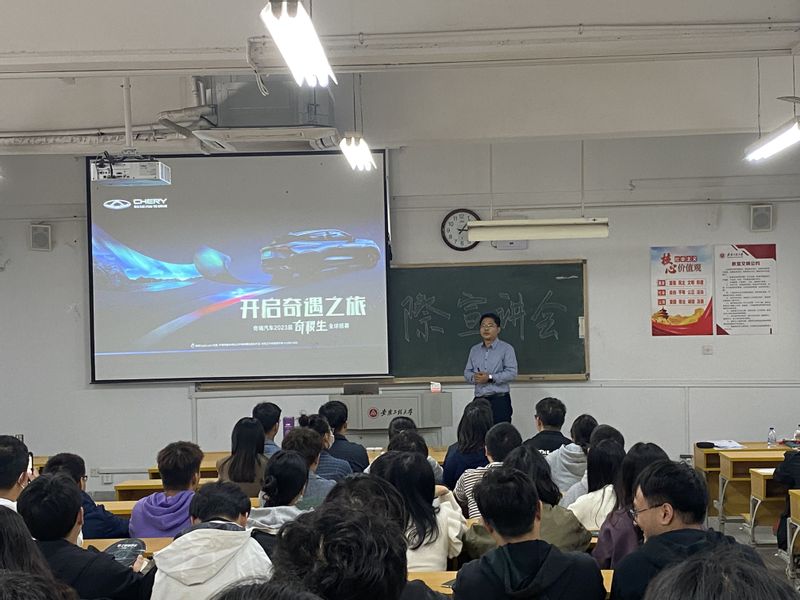 11月1日下午,数理与金融学院携手奇瑞国际在4教213举办“开启奇迹之旅”线下招聘宣讲会,数理与金融学院党委副书记何志恒出席活动,约130位毕业生参加招聘宣讲会。