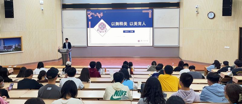 11月11日晚,数理与金融学院美育大课堂之舞蹈专场开讲,校团委兼职副书记、大学生艺术教育中心美育指导老师王康受邀为同学们做了一场“以舞释美,以美育人”的主题报告,来自学院各年级近200名同学参加。