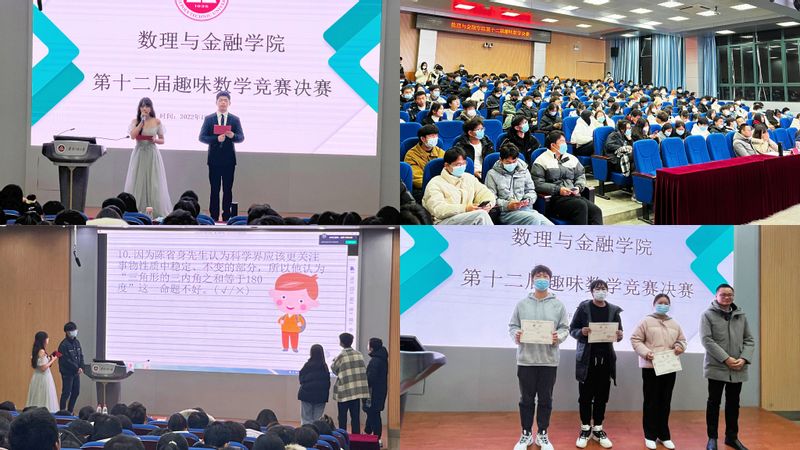 12月3日晚,数理与金融学院第十二届趣味数学比赛决赛在5教117举行,来自各学院的10支队伍参赛。学院副院长张培雨、团委书记和200余名同学共同观看比赛。