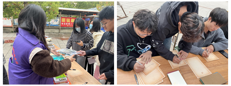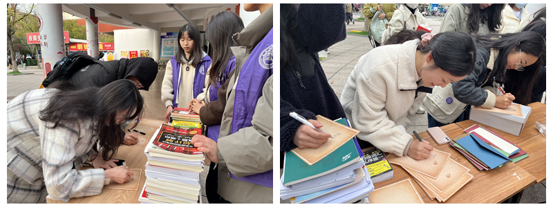 有不少同学捐赠完图书后,还叫上了小伙伴们一同来现场参与活动,大家对于捐赠书籍和写信祝愿的活动形式非常感兴趣,参与度极高。现场有位大四同学表示:以捐书的小举动,不仅促进了旧书资源充分利用,也充分体现了我校学子乐于奉献的美好品质。