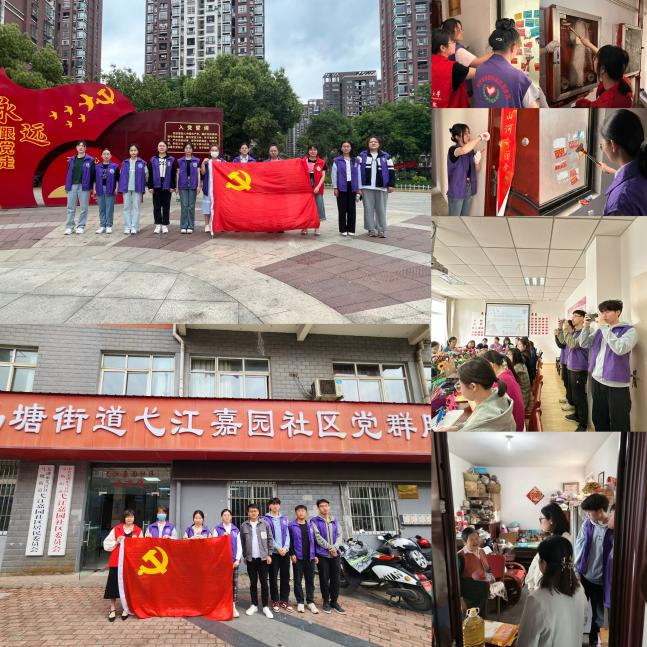 在五四青年节当天,党支部积极响应五四青年精神的时代号召,联合马塘街道蓝湾半岛社区开展“‘弋’心向党、奉献青春”五四青年节志愿服务活动。学生党员走向社区的角角落落,彻底清理小区楼道、墙面、公共设施等乱张贴的“小广告”,还社区居民一个整洁优美、文明有序的居住环境。
