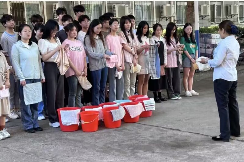 活动伊始,宿管阿姨分发毛巾和水桶,传授宿舍保洁经验,同学们认真学习和领悟打扫要点。在短暂的培训后,小分队成员分为男生女生两组,男生组到男生5栋二楼打扫空宿舍,女生组到女生8栋四楼打扫空宿舍。同学们积极配合,认真细致,努力将宿舍打扫整洁干净。