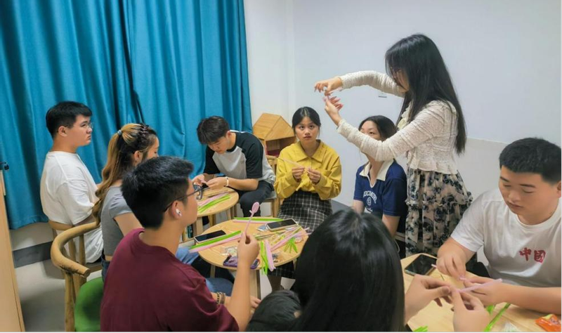 为丰富同学们校园文化生活,提高大学生艺术素养和综合素质,6月7日晚,数理与金融学院在男生宿舍11栋“评理说事大课堂”开展“生活技能小课堂”第四讲。本期活动由互金221胡心怡同学教同学们如何制作扭扭棒花束以及编手绳,数十名同学参与。