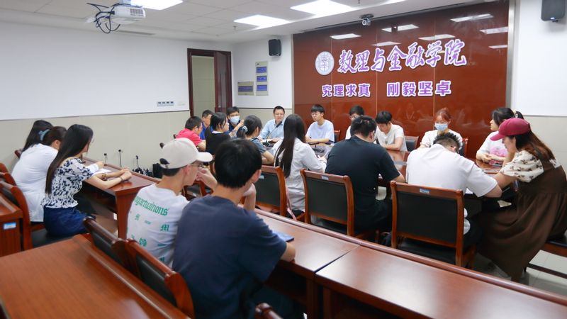6月8日,数理与金融学院组织举办了数学建模座谈会,数学建模协会主席团成员和全体部长、学院副院长张培雨、王伟老师和李军老师出席了此次座谈会,会议由数学建模协会指导老师周金明主持。