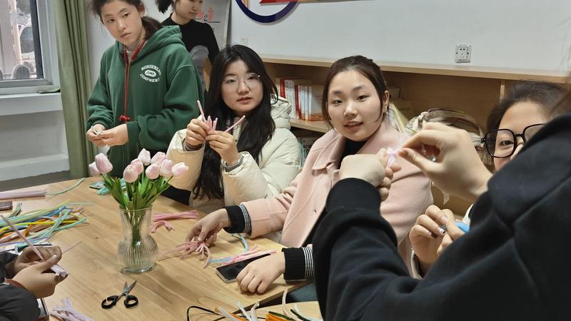 本期畅谈会还邀请学生共同开展劳动实践教育活动,合力制作“扭扭棒鲜花”,大家在轻松愉快的氛围中学习手工艺品制作,畅谈学习生活中的困惑与烦恼,结交新朋友,进一步增强沟通交流能力。