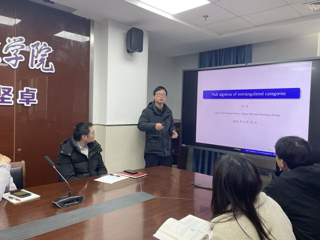 会后,“应用数学团队”骨干教师柴劲松副教授和汪力博士分别做了题为《Bessel函数及其在表示论中的应用》和《Hall algebras of extriangulated categories》的学术报告,团队老师开展了热烈讨论。