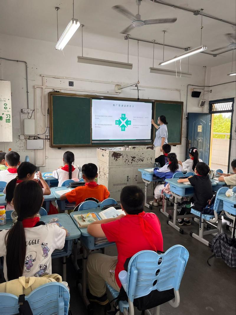 金融222王思妍在铜陵市安平中心小学开展宣讲活动。她通过PPT分享的形式并采用集中授课、诗词朗诵、互动游戏等形式,激发学生的学习兴趣,提高学习效果。她说:“在授课过程中,我们不仅注重普通话的发音、语调、语法等基础知识的教学,还融入了丰富的文化元素,如讲述历史故事、介绍地方文化等,让学生在轻松愉快的氛围中感受普通话的魅力。”