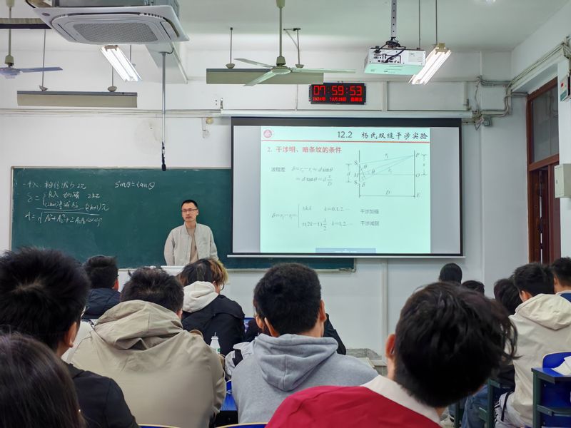 为交流共享教学经验,提升青年教师教学能力,10月25日,数理与金融学院“金”彩一课示范教学观摩活动在6J208开展。本次活动由徐跟建老师主讲《大学物理2》中的“光的干涉”部分内容,学校多名中青年教师代表参与了观摩活动。