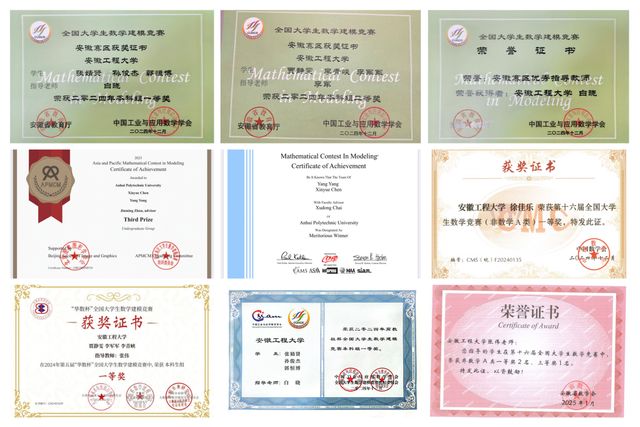 以赛赋能成长,强化思维培养。组建竞赛导师团队,将数学方法与创新实践融入学科竞赛。通过魔方、数独等趣味活动激发学习兴趣,举办“三行情数” 等文体活动深化知识理解。依托数学建模协会成立训练营,组织芜湖高校联赛等赛事,指导学生在国内外竞赛中斩获佳绩,近年来获全国大学生数学建模竞赛一等奖1项、二等奖1项,美国大学生数学建模竞赛一等奖2项、二等奖3项,全国大学生数学竞赛一等奖17项、二三等奖116项。