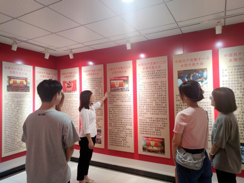 实践团队首先观岚社区党群服务中心进行参观红色文化纪念馆,社区工作人员也对红色文化长廊进行了热情仔细的讲解和介绍,同学们在参观过程中了解到中国共产党一路走来的光辉历程,对接下来的墙绘内容有了更好的构思与创作。