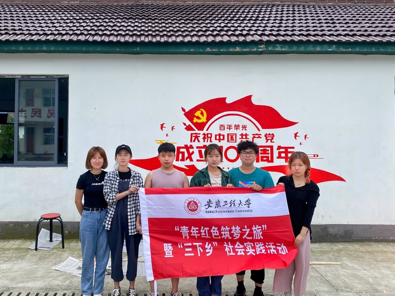 在庆祝中国共产党成立100周年之际,艺术学院工艺美术191团支部开展“青年红色筑梦之旅”暨暑期“三下乡”社会实践活动,到芜湖市鸠江区官陡街道官飞社区开展红色主题墙绘活动,将思政教育与专业实践结合起来,传递红色基因,营造浓厚学习党史氛围。