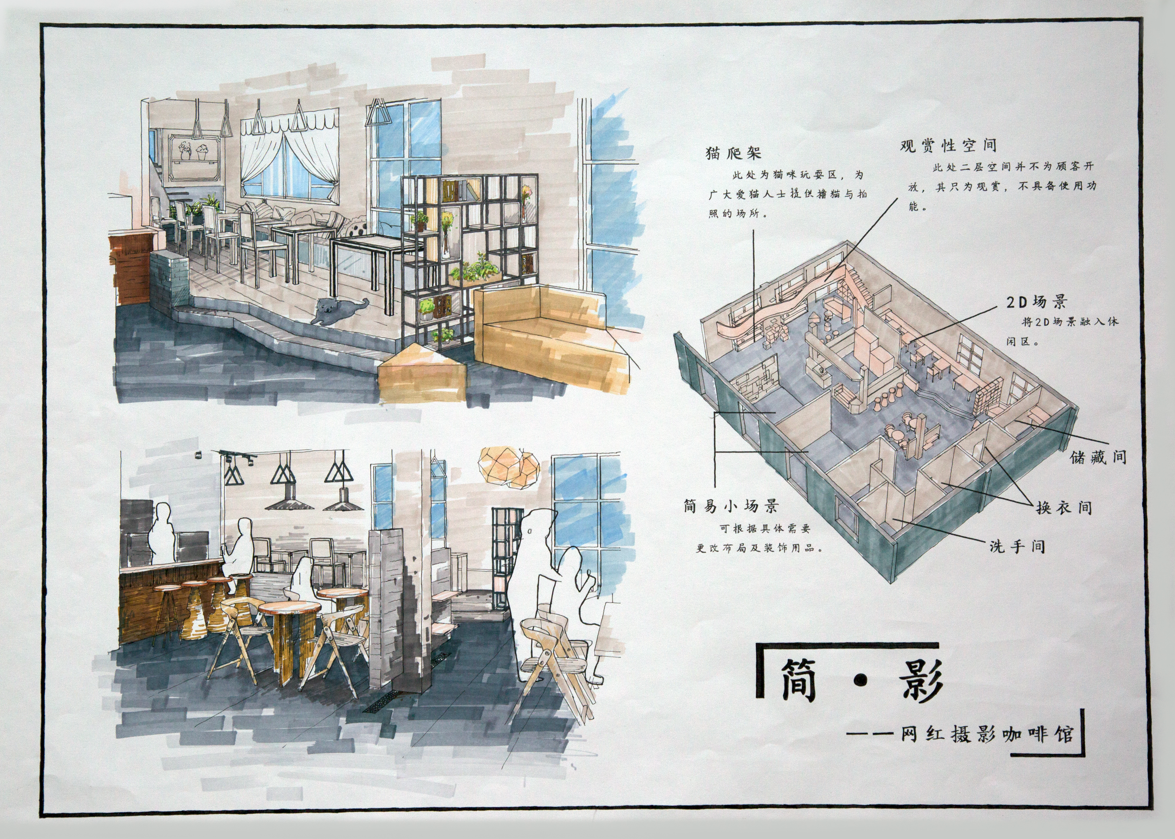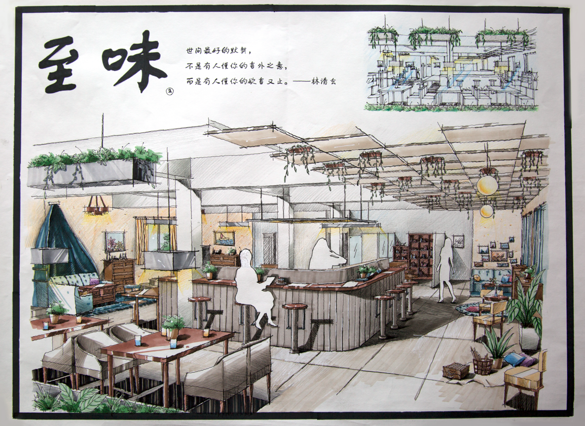本次比赛统一命题,邀请海峡两岸30多所高校参赛。艺术学院是第三次参加海峡高校赛事,总结前面参赛的经验,这次比赛在学院的组织下,环境设计专业负责人孟梅林和齐宛苑、鲁俊多位老师积极指导学生设计方案、修改和深化图纸,通过校内筛选,选出9幅作品参赛。最终,环境设计18程曼晴同学的作品《禾•光》获二等奖,刘虞双同学的作品《至味》获三等奖,石尚同学的作品《简•影》和卞林瀚同学的作品《状态PUNK》获佳作奖。
