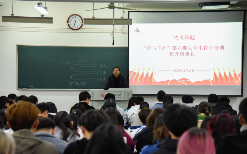 11月10日晚,艺术学院于六教211举行第六期“青年马克思主义者培养工程”大学生骨干培训班开班典礼。院党副委书记胡家增、任家钱,团委负责人叶杨,培训班班主任吴旭及全体青马班学员参加此次开班典礼,典礼由班主任吴旭老师主持。