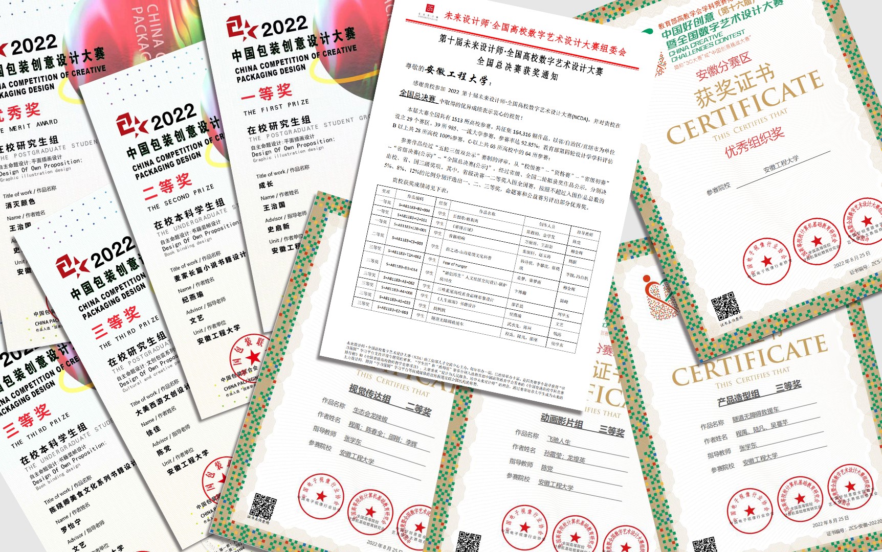 近日,2022第十届未来设计师全国高校数字艺术大赛(NCDA)获奖结果公布,艺术学院取得可喜成绩。在该赛事安徽赛区中,艺术学院共获奖52项,其中一等奖15项、二等奖17项、三等奖20项,并获得省级优秀组织奖;在全国总决赛中,共获等级奖10项,其中一等奖3项、二等奖1项,三等奖6项。NCDA由工信部人才交流中心主办,每年举办一届,已连续举办十届,赛事入选教育部《全国普通高校学科竞赛排行榜》;本届大赛共有1513所高校参赛,共征集164316幅作品,全国共设29个赛区。