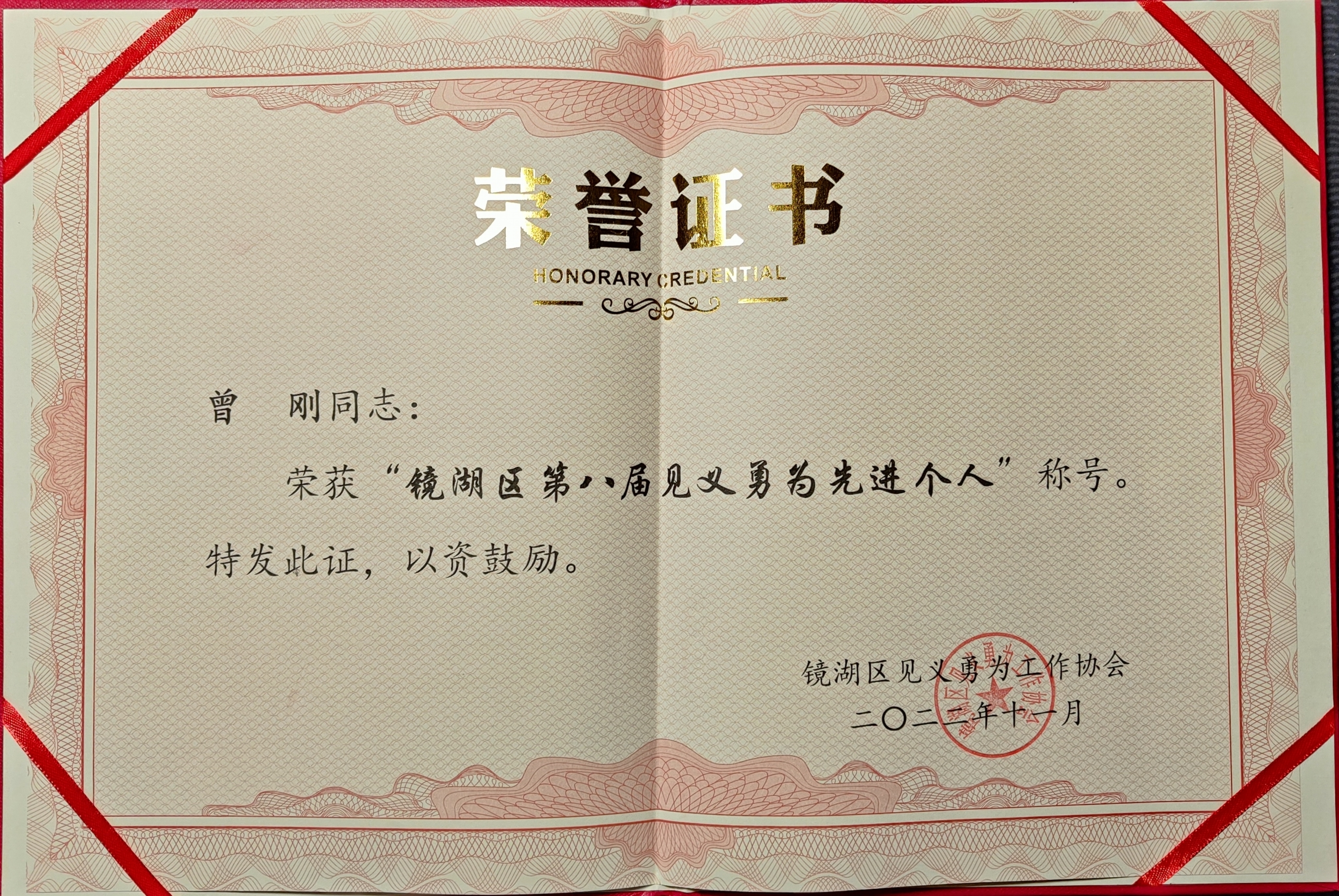 近日,芜湖市镜湖区第八届“见义勇为先进个人”名单发布,艺术学院工业设计141班伊育城(已毕业),工业设计192班夏梦宇、曾刚3名同学荣获“见义勇为先进个人”二等奖。