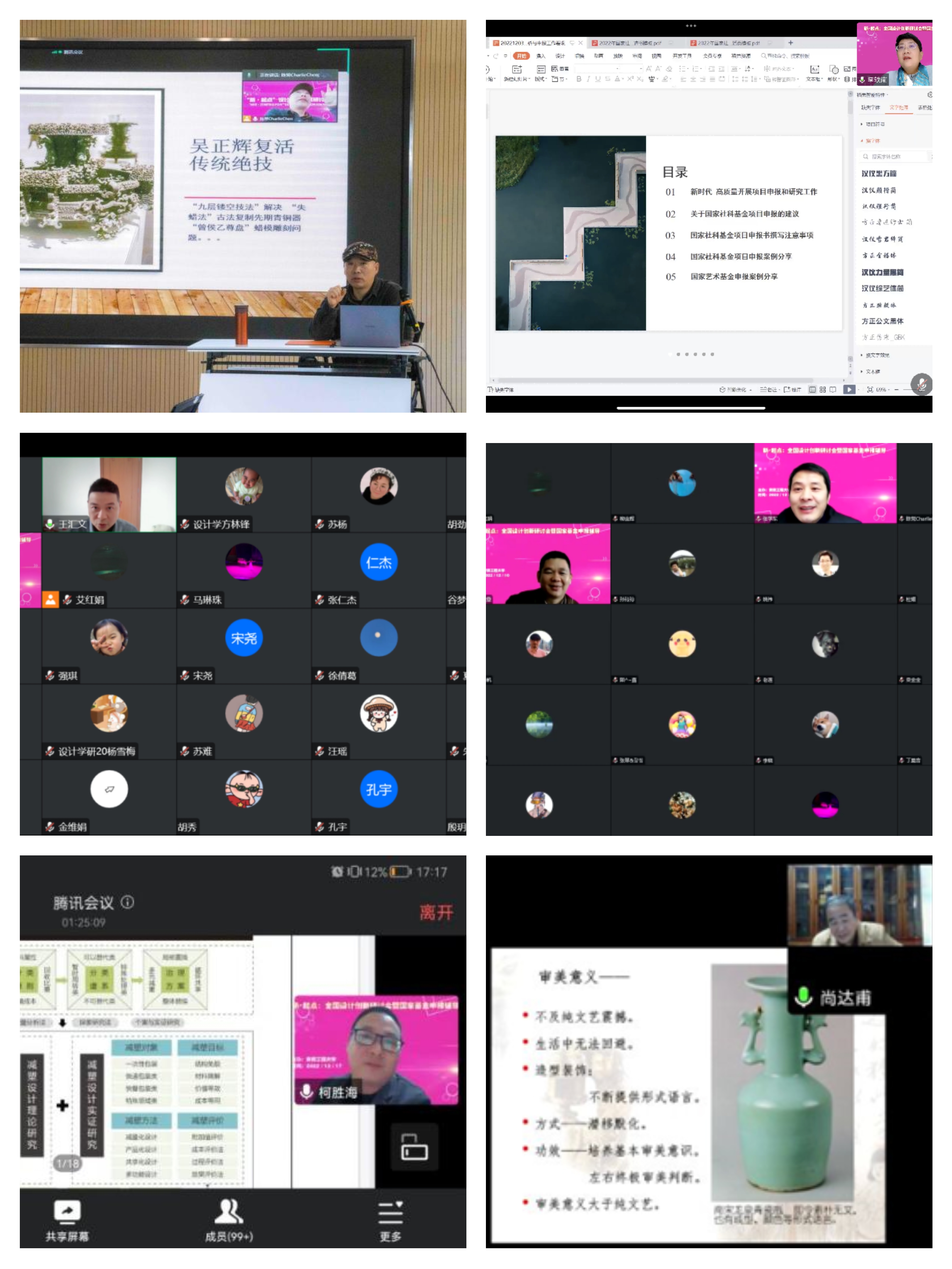 为促进设计学学科发展和国家基金项目申报,艺术学院克服疫情影响,通过线上举办了新•起点”全国设计创新研讨会暨国家基金申报系列讲座, 6位设计学领域专家受邀分四场作学术报告。艺术学院全体教师和部分研究生参加了学术报告会
