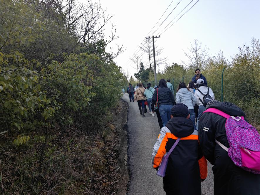 早春三月的珩琅山群山拥聚,绿数成荫,景色宜人,大家踏着清晨的阳光,相互携扶攀爬至山顶,途中参观了湾沚区重点保护文物珩琅古塔及珩琅战壕遗址。历经八百余载风雨剥蚀的珩琅古塔在抗日战争时期被日军炮弹袭击,塔刹倾斜,楼阁被焚,外墙图案却仍依稀可辨;走过山顶的抗战时期战壕遗址,依然能感受到那一段热血与信念共存的记忆。