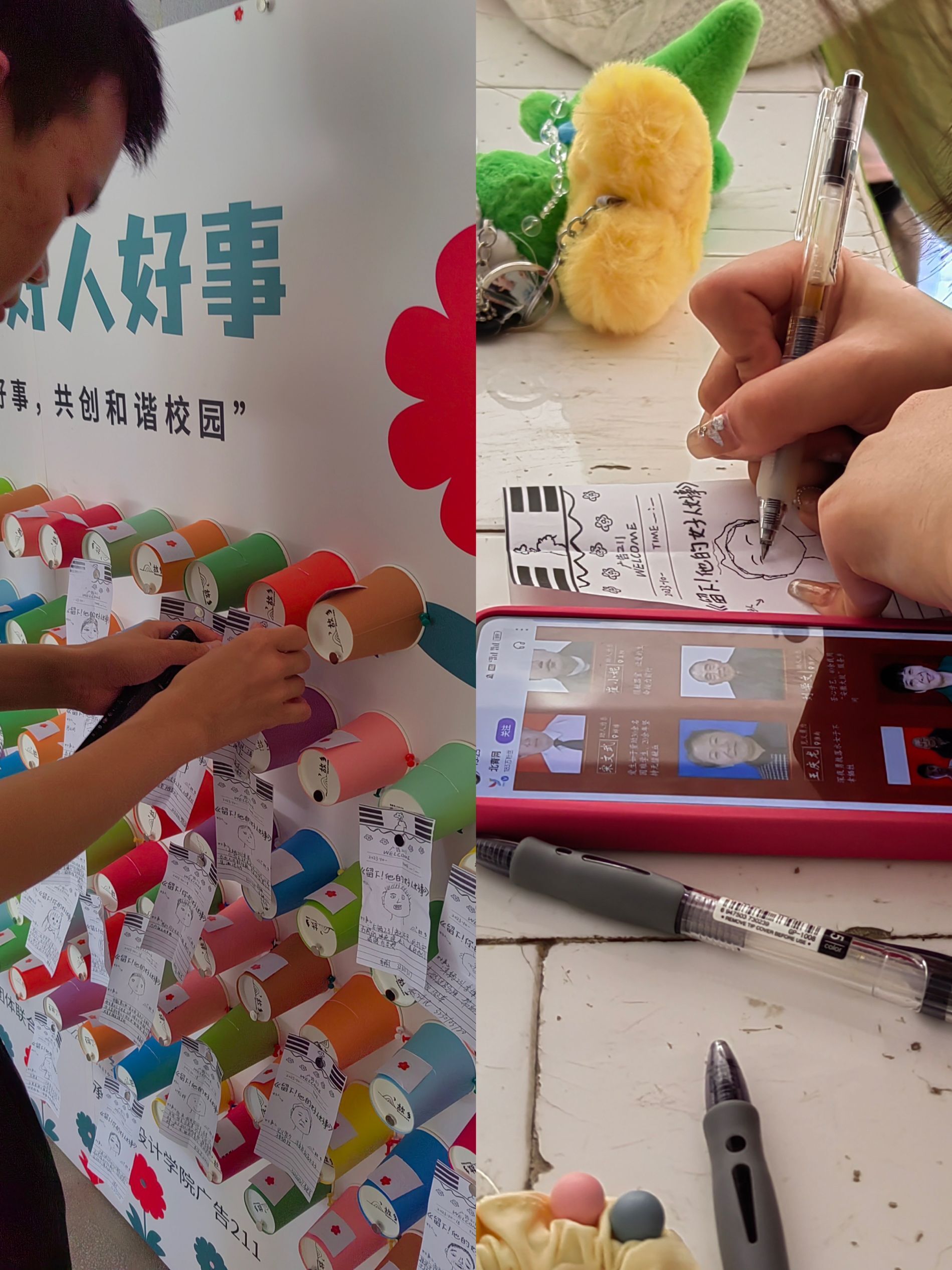 此次教学活动涉及面最广的“一方水土养一方人”项目,动员全校15个院系56个专业982位同学共同参与收集家乡土壤活动,经筛选获得有效样本588份土壤、326条留言、452份反馈问卷、1430张图片,在设计学院一楼展厅集中展示。传播范围最远的“月亮的心愿”项目,开展“边远地区困境儿童爱心助学一元捐公益活动”,对接我国最北端的漠河市西林吉镇社区,满足了16个困境儿童的微心愿。最具互动的“留下!好人好事”项目,采用了请同学们拆盲盒后填写和绘制好人头像的趣味形式宣传好人事迹和精神,让参与的同学用自发行为营造崇德向善、见贤思齐的校园氛围,塑造学生文明、健康、积极向上的精神面貌。