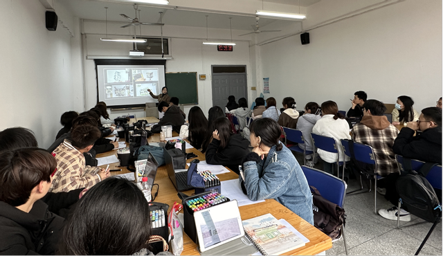 齐宛苑讲授的内容是《环境设计表现》课程中的马克笔表现技法。该课程为2022省级线上线下混合式教学建设课程,通过校内spoc雨耕学堂和慕微课堂两个智慧工具开展教学,有效解决了教师在教授实践类技法课程时面临的范画难、评图难等问题。齐宛苑老师备课充分,对教学内容了如指掌,教学技术运用娴熟课堂教学效率高,学生互动积极,现场教学效果良好。