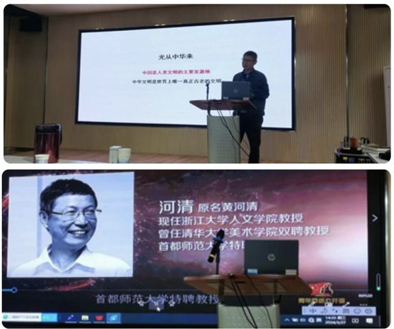 2024年3月27日下午, 在7教1楼报告厅,设计学院邀请了著名艺术史学者黄河清教授作题为光从中华来的学术讲座。学院院长助理钱涛主持,部分专业教师和全体研究生参会。