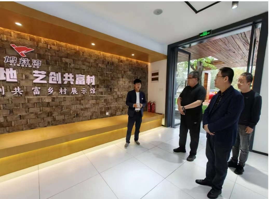 在鸠兹湾艺创共富村,陆峰一行详细了解了该村的艺术创意产业发展情况,与文创企业负责人深入交流,探讨了设计学院与乡村文化产业的合作前景。陆峰表示,设计学院应发挥专业优势,与乡村文化产业深度融合,共同打造具有地方特色的文化品牌,为乡村振兴贡献智慧和力量。