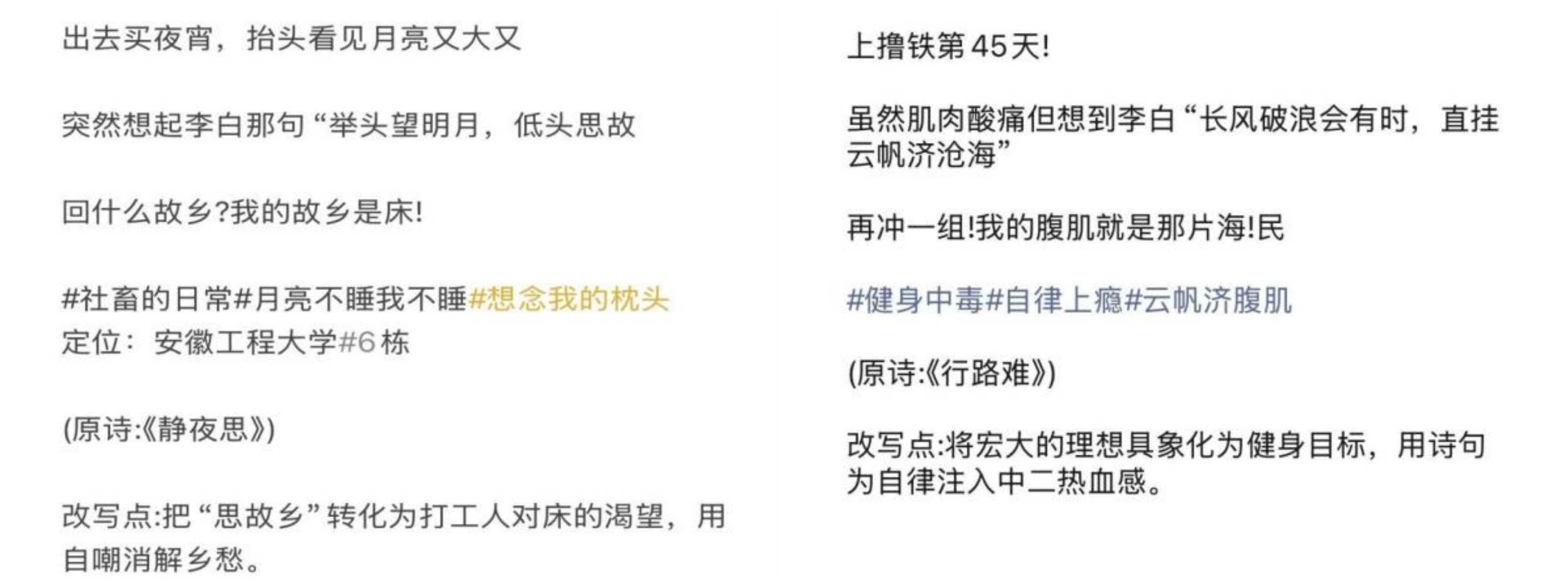 活动发布一周内,同学们踊跃投稿,发挥创意,将《将进酒》改编成朋友圈邀约,把《赤壁赋》写成深夜感悟,以图文、视频形式参赛。后续通过线上投票选出人气作品,让古典文学在创意转化中焕发出新的生机,使同学们在轻松氛围中感受传统文化魅力。